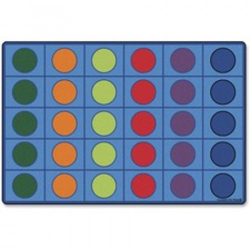 Rug features rows of primary-colored circles to create a fun place for children to sit and learn. Each circle designates the perfect seating area for children. Rectangular rug offers the ultimate in classroom organization and is safe for children of all ages.